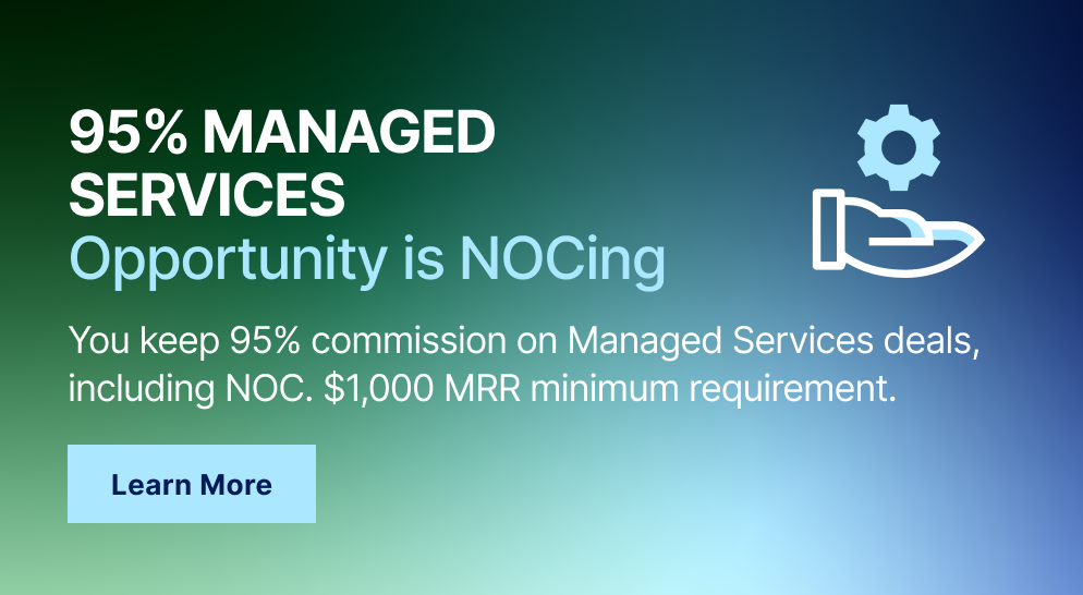 Keep 95% commissions on qualifying Managed Services deals over $1,000 monthly. Benefit from VNOC Network and Cloud Infrastructure services, including SmartSupport for enhanced satisfaction and retention.